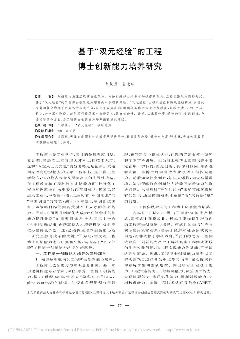 基于_双元经验_的工程博士创新能力培养研究